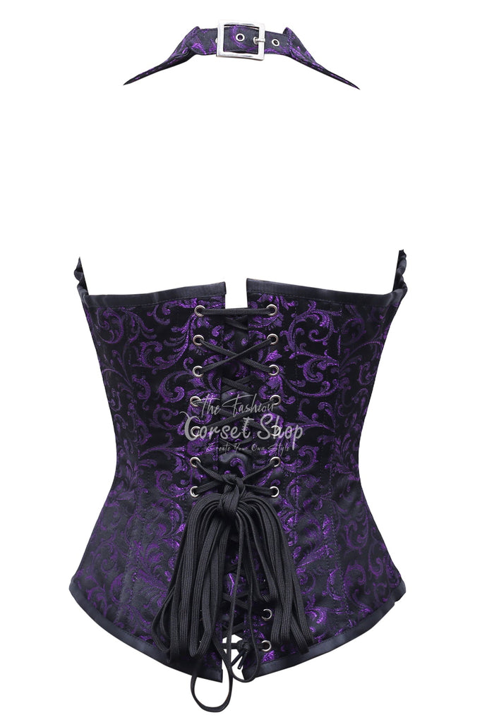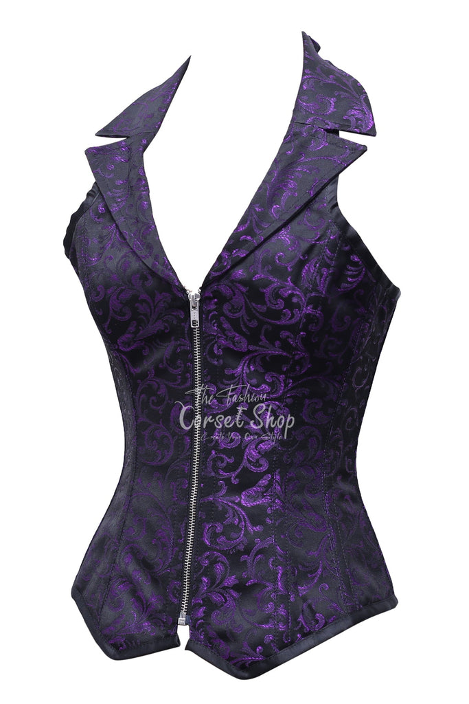 Bink Black Purple Brocade Overbust Corset With Zip Front