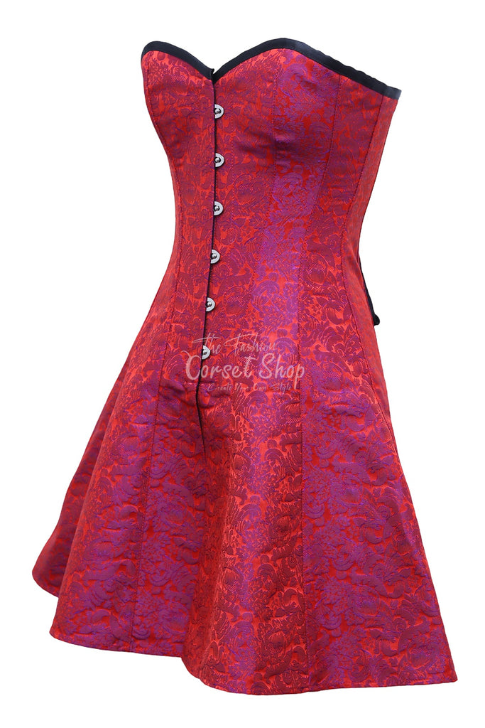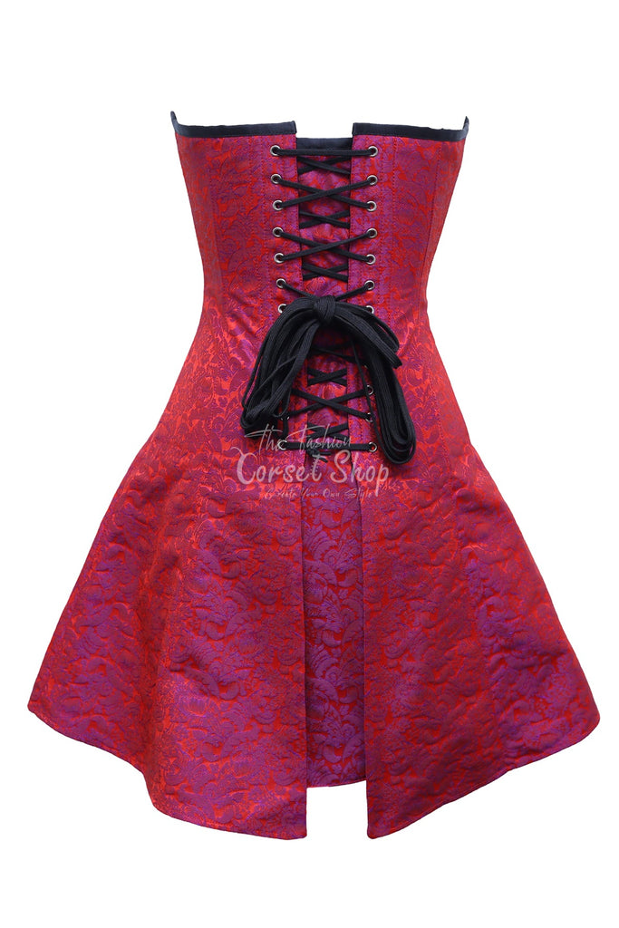• Authentic Steel Boned Orange Black Brocade Overbust Long Corset Dress
