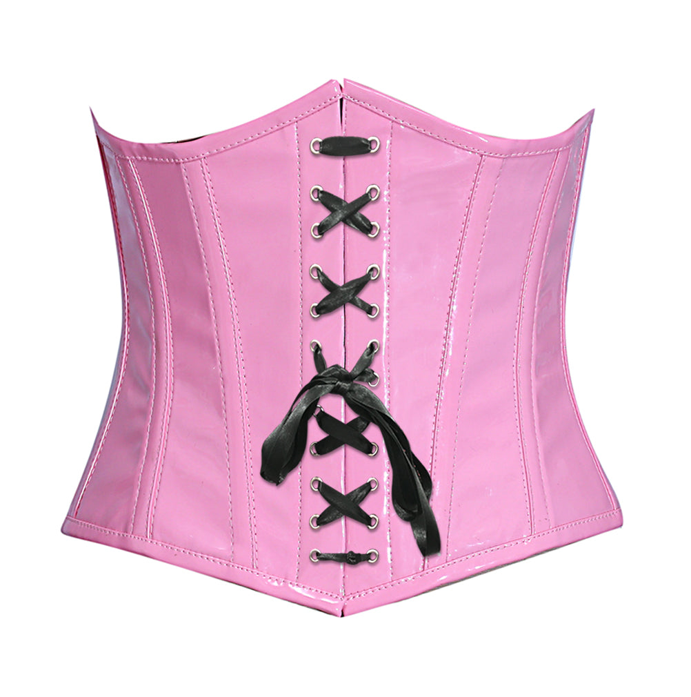 Pink PVC Steel Boned Underbust Corset