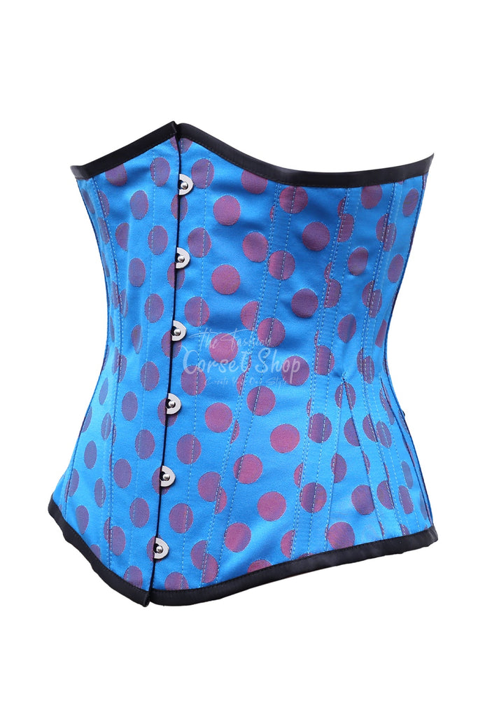 Ainsley Red Polka Dot On Turquoise Satin Underbust Corset