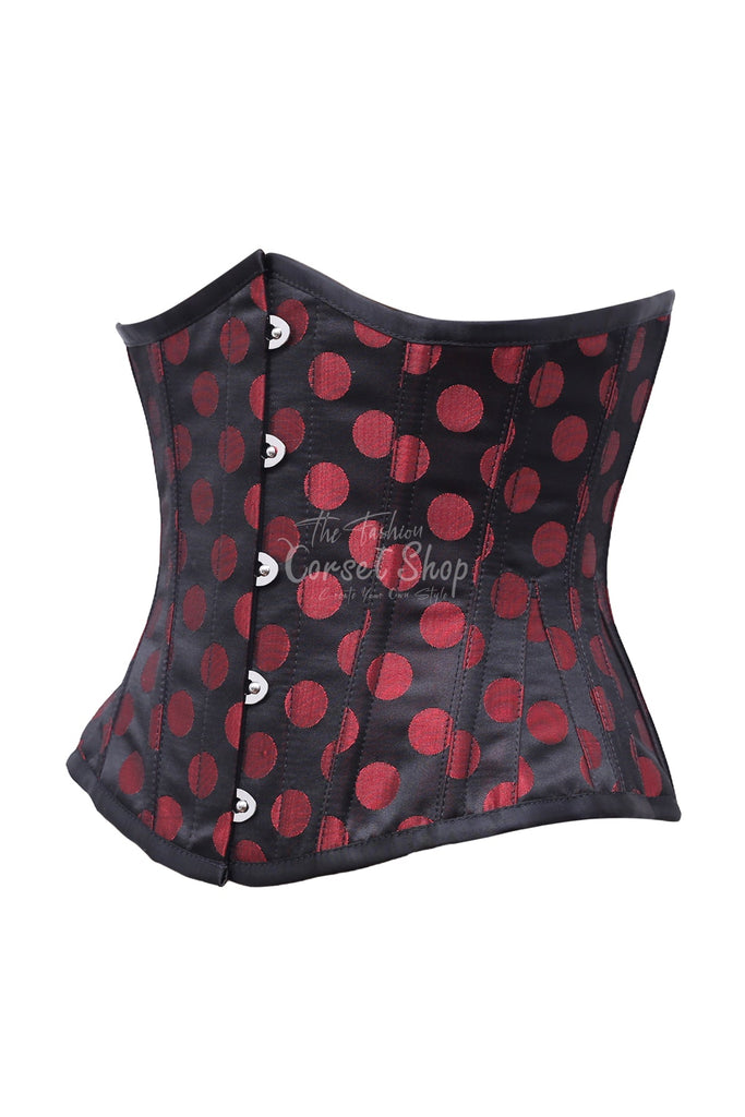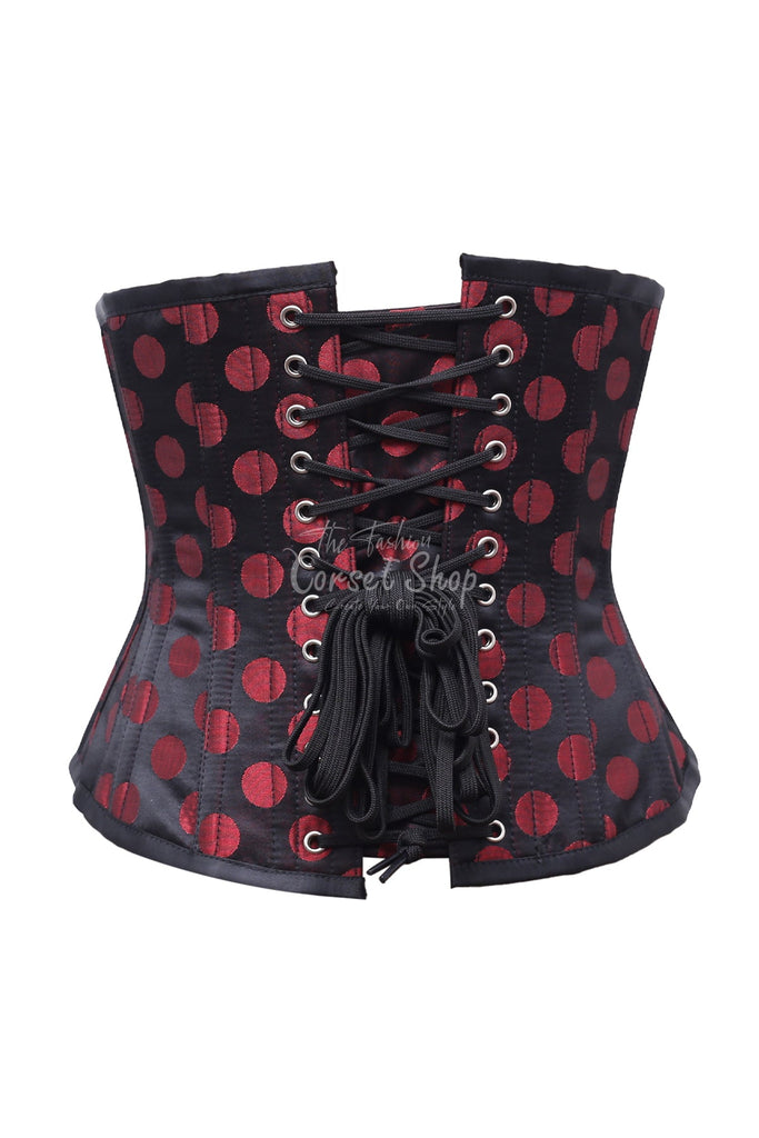 Apollina Red Black Polka Dot Black Satin Underbust Corset