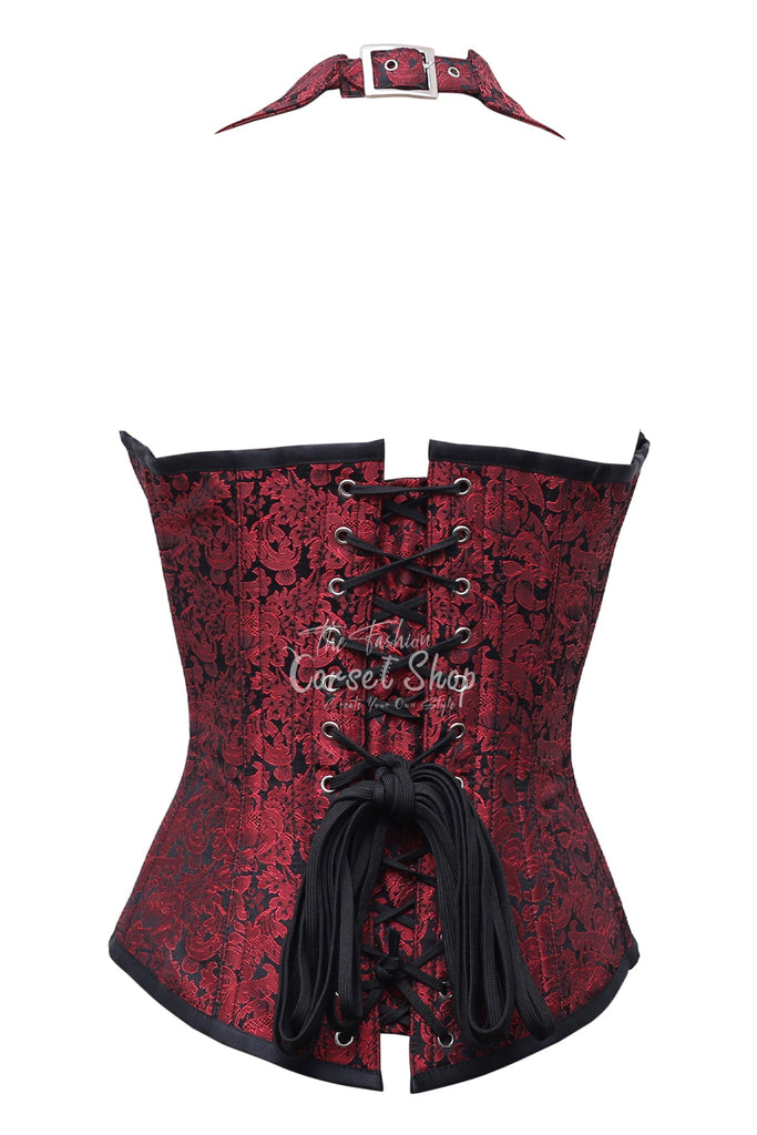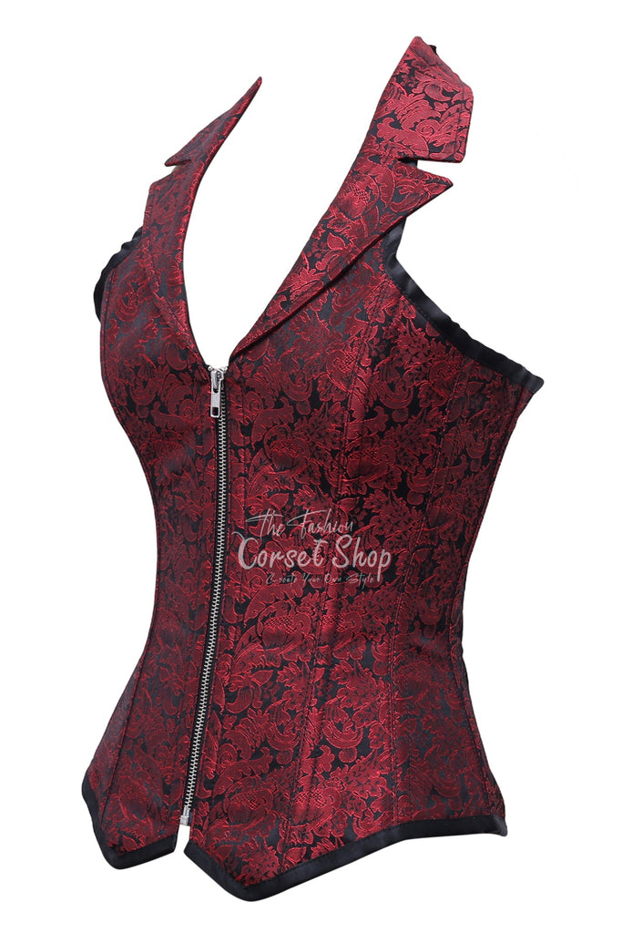 Mziu Red Black Brocade Overbust Corset With Zip Front