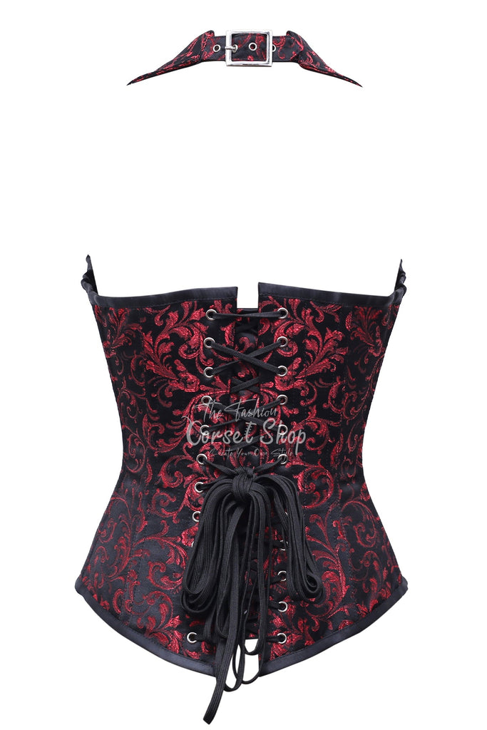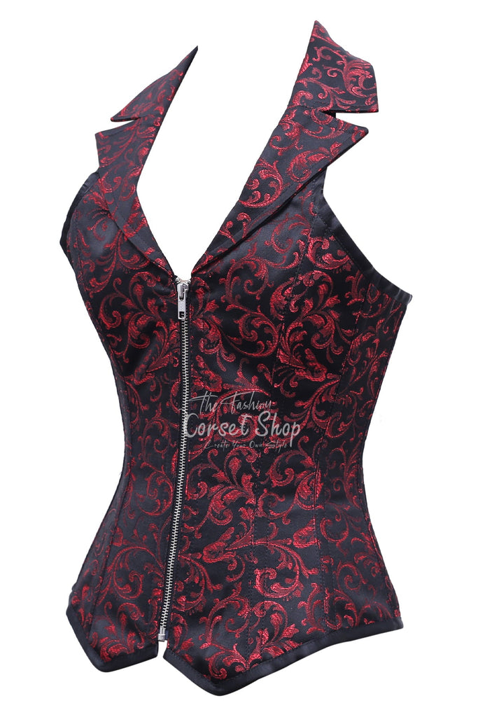 Odessa Black Red Brocade Overbust Corset With Zip Front