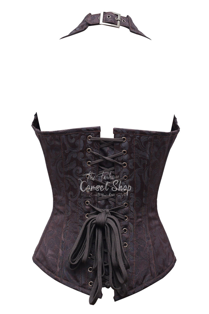 Drescher Coffee Black Brocade Overbust Corset With Zip Front