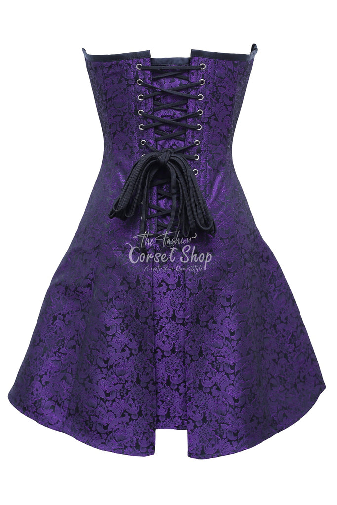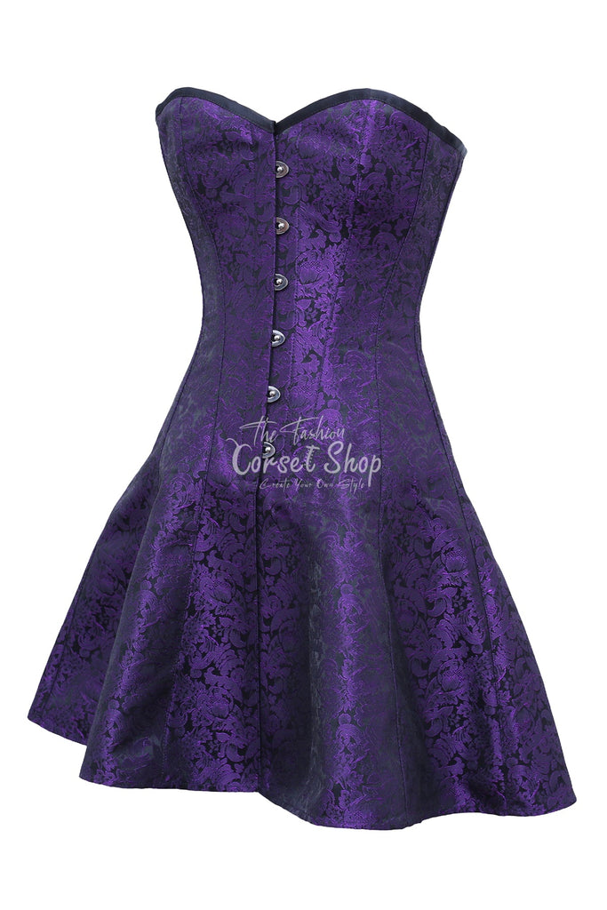 • Authentic Steel Boned Purple Black Brocade Overbust Long Corset Dress