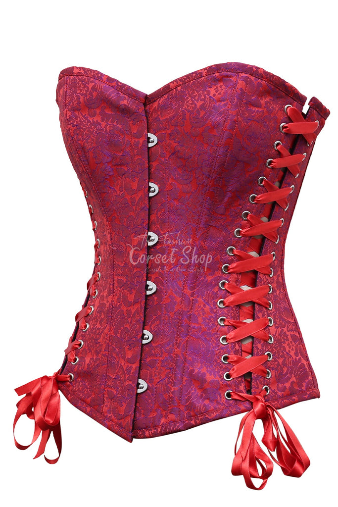 Juni Red Purple Brocade Steampunk Overbust Corset
