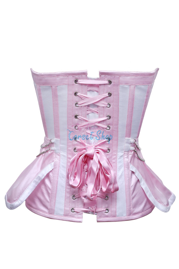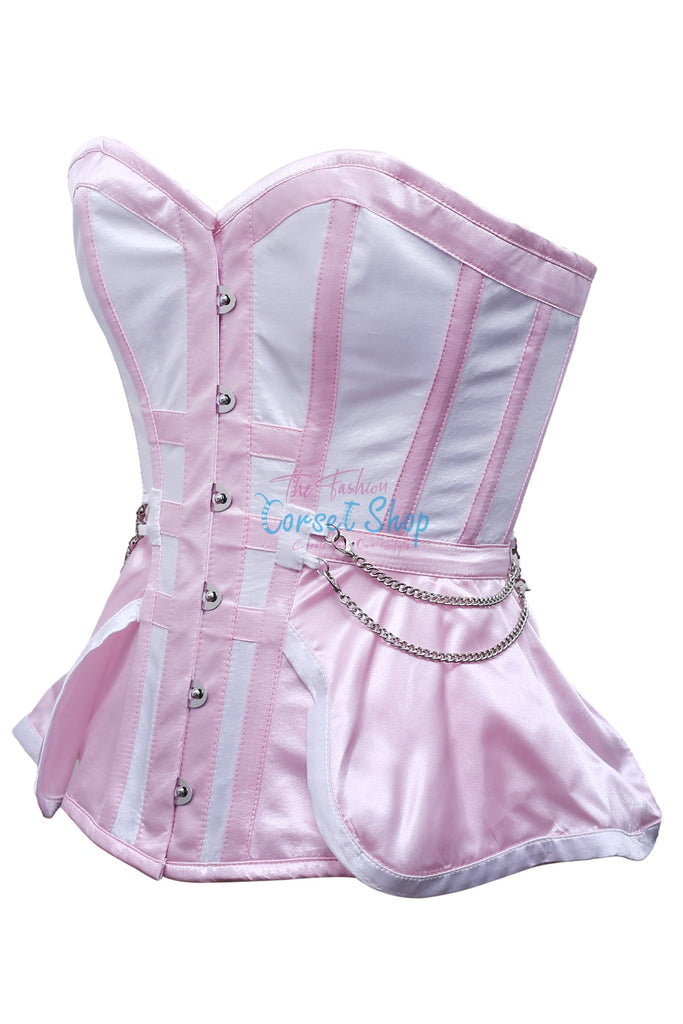 Kiki Baby Pink White Satin Overbust Corset