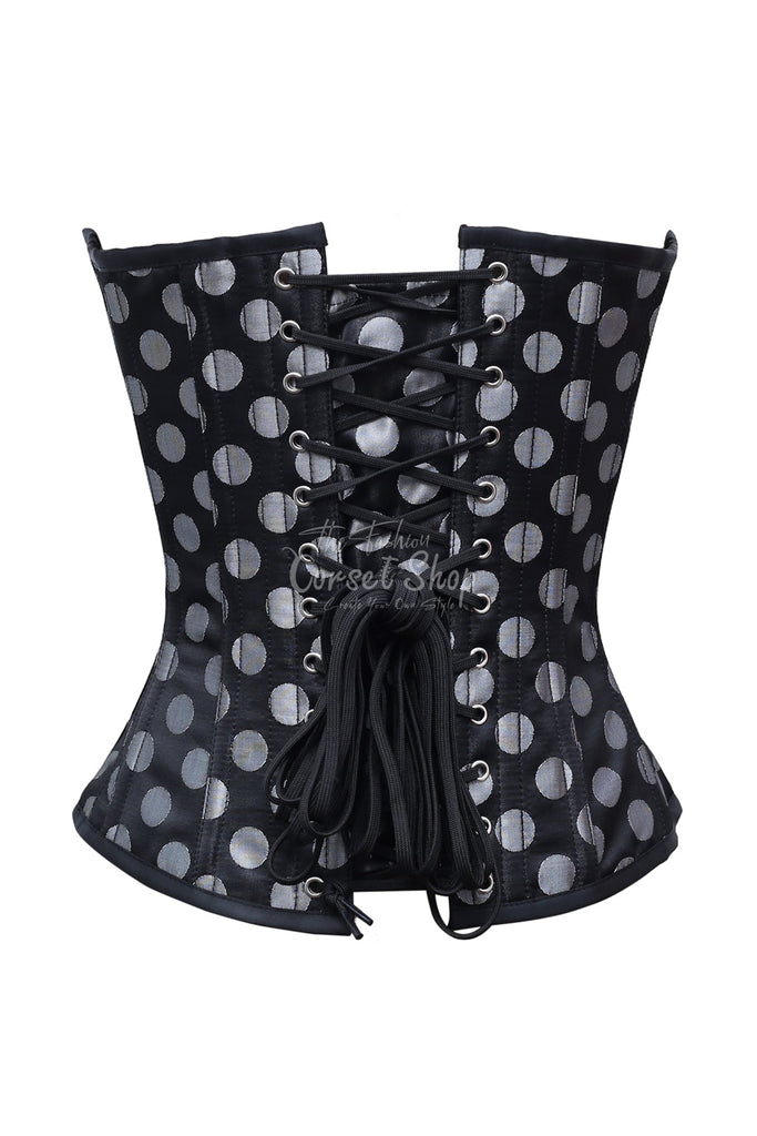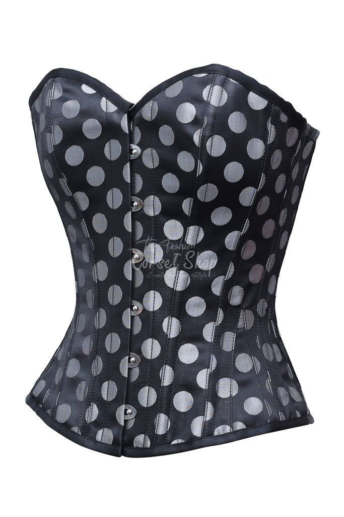 Konstantine Polka Dot On Black Satin Overbust Corset