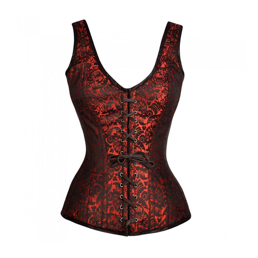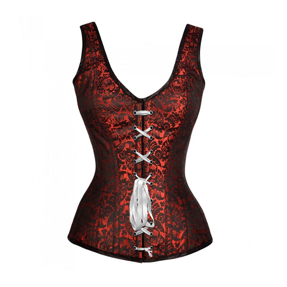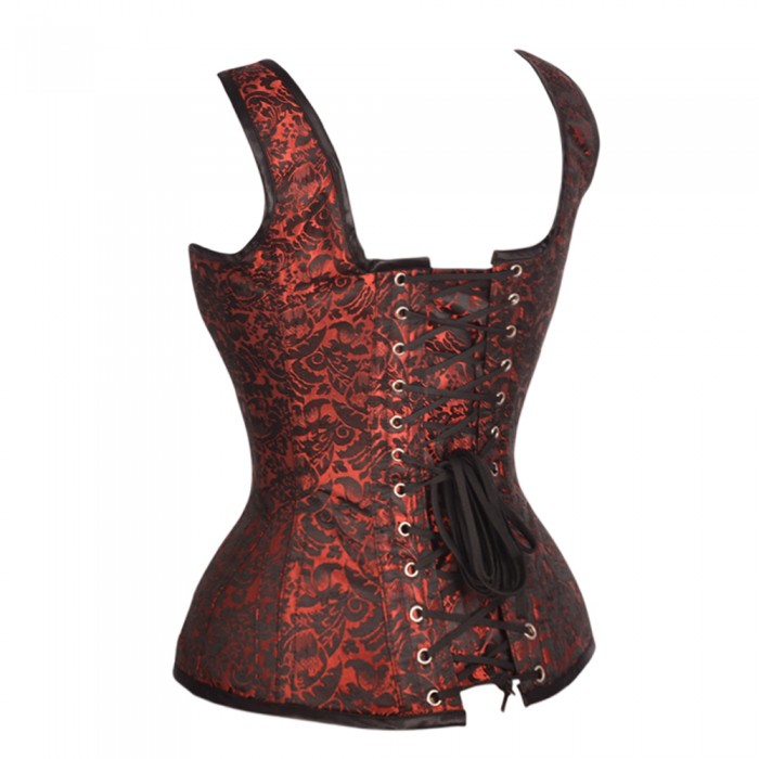 Queenie Brocade Shoulder Straps Overbust Steel Boned Corset