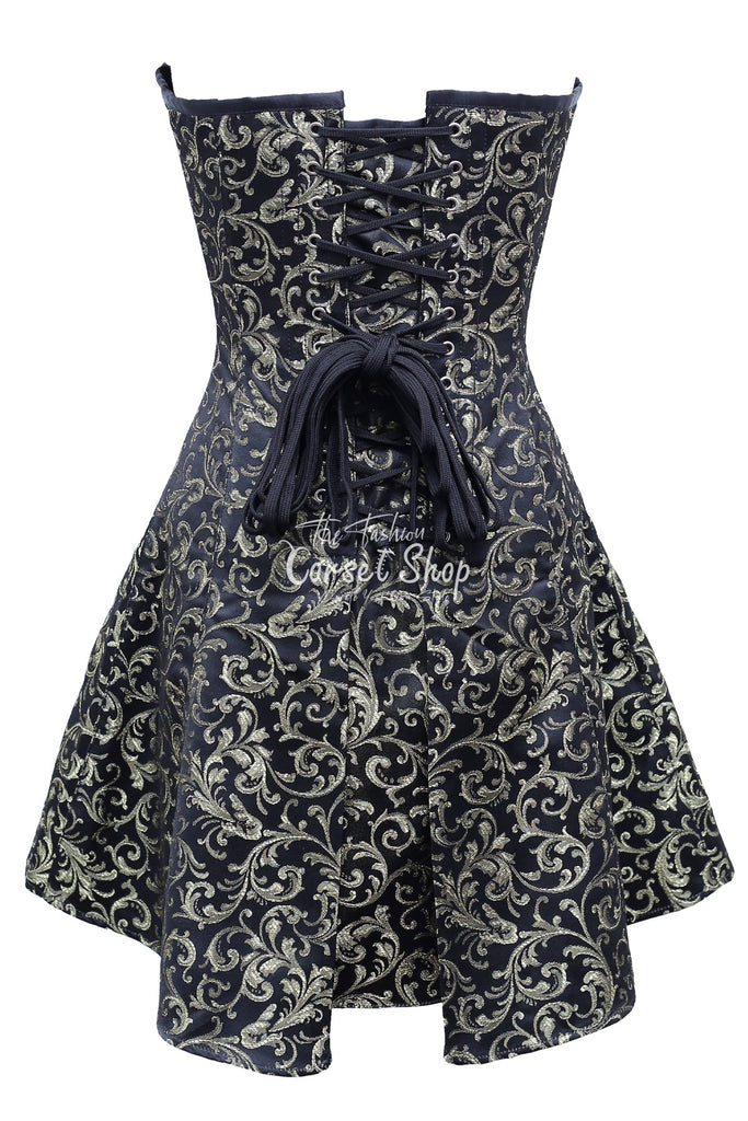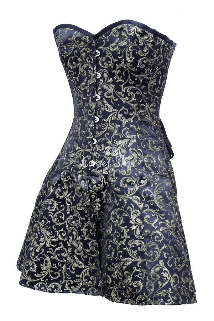 • Authentic Steel Boned Gold Black Brocade Overbust Long Corset Dress
