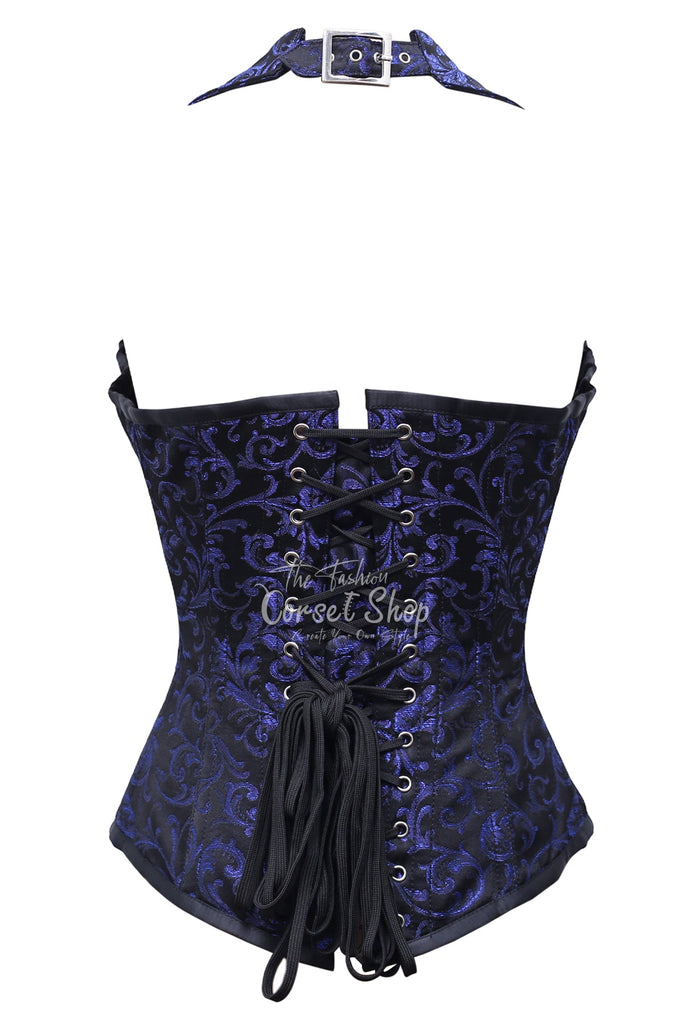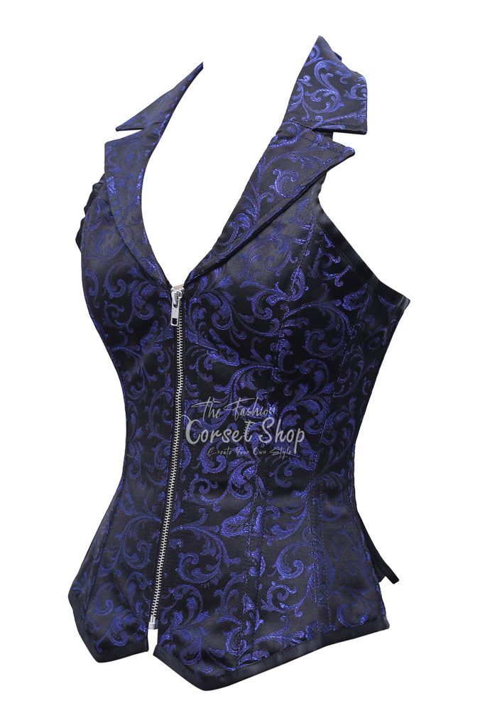 Studi Black Blue Brocade Overbust Corset With Zip Front
